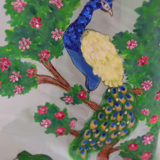 • Technique: Intricately Hand-painted Pichwai painted Vrindavan jungle theme