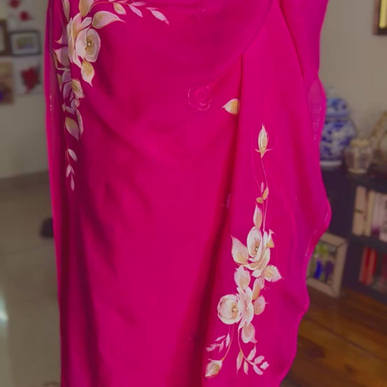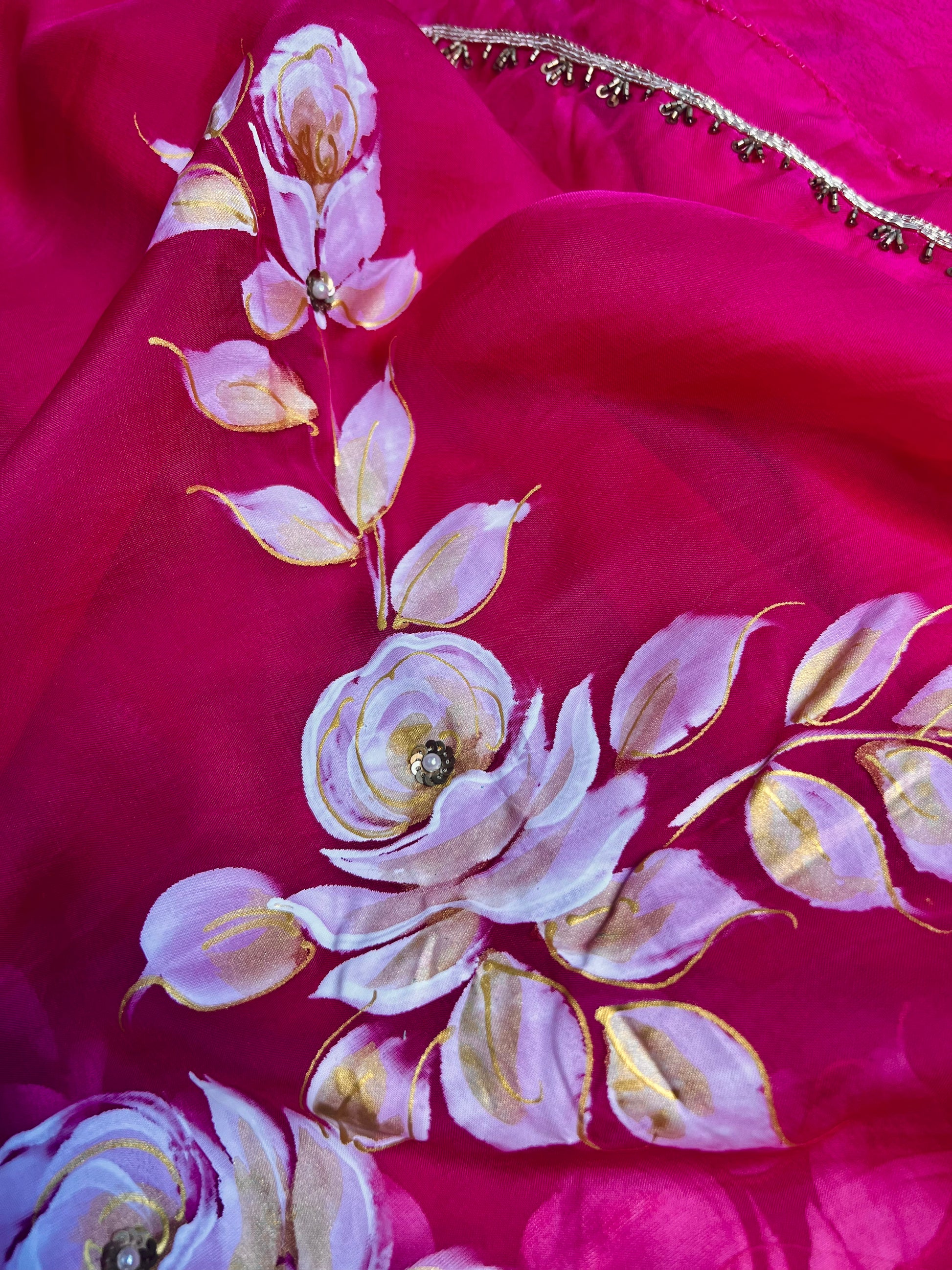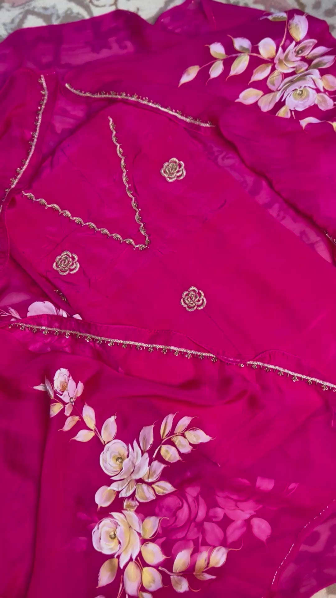 Pink Hand Embroidered Crepe Silk Suit With Hand-painted Dupatta