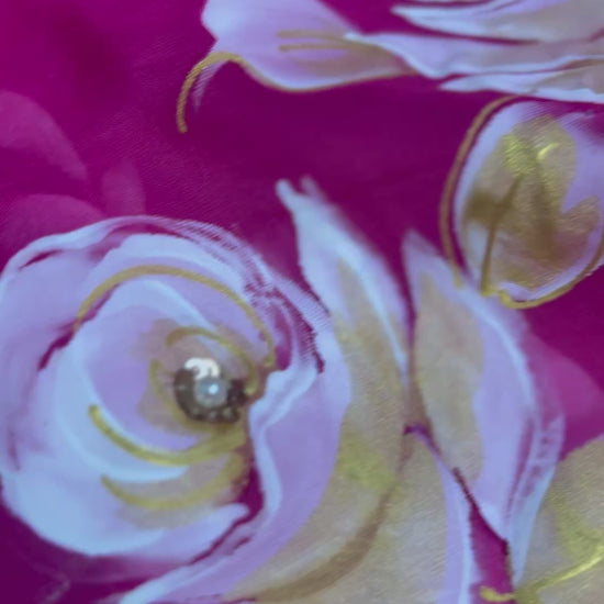 Dupatta Detailing: Each dupatta is hand-painted making every piece one-of-a-kind. Accentuated with delicate embroidery for an heirloom finish. Hand-painted & Hand-embroidered Dupatta