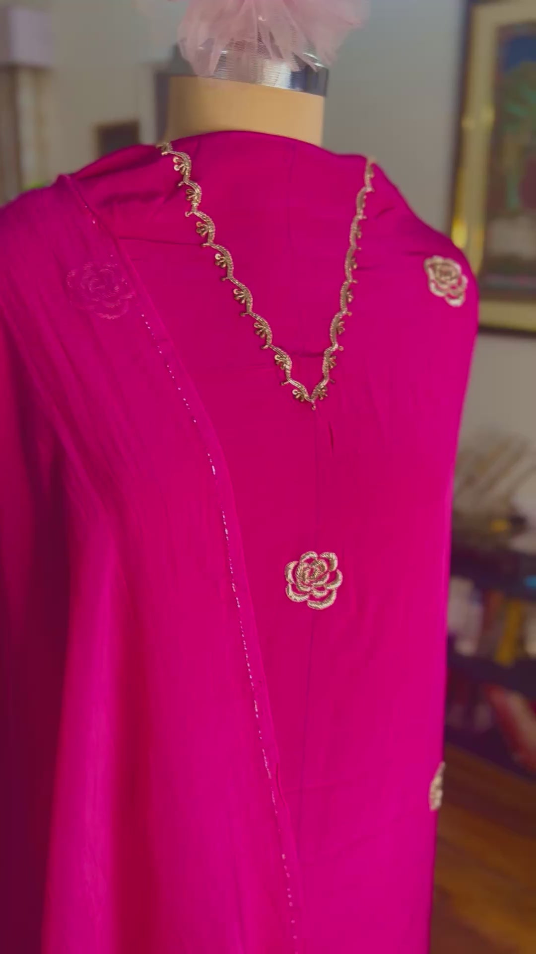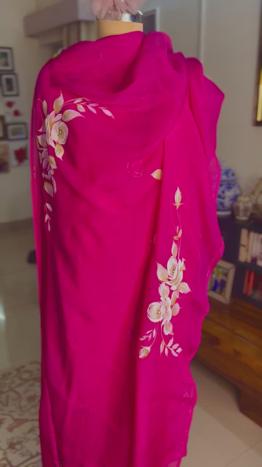 Elevate your wardrobe with this timeless hand-embroidered kurta and bottom set, paired with a hand-painted dupatta — a harmonious blend of heritage craftsmanship and contemporary elegance.
